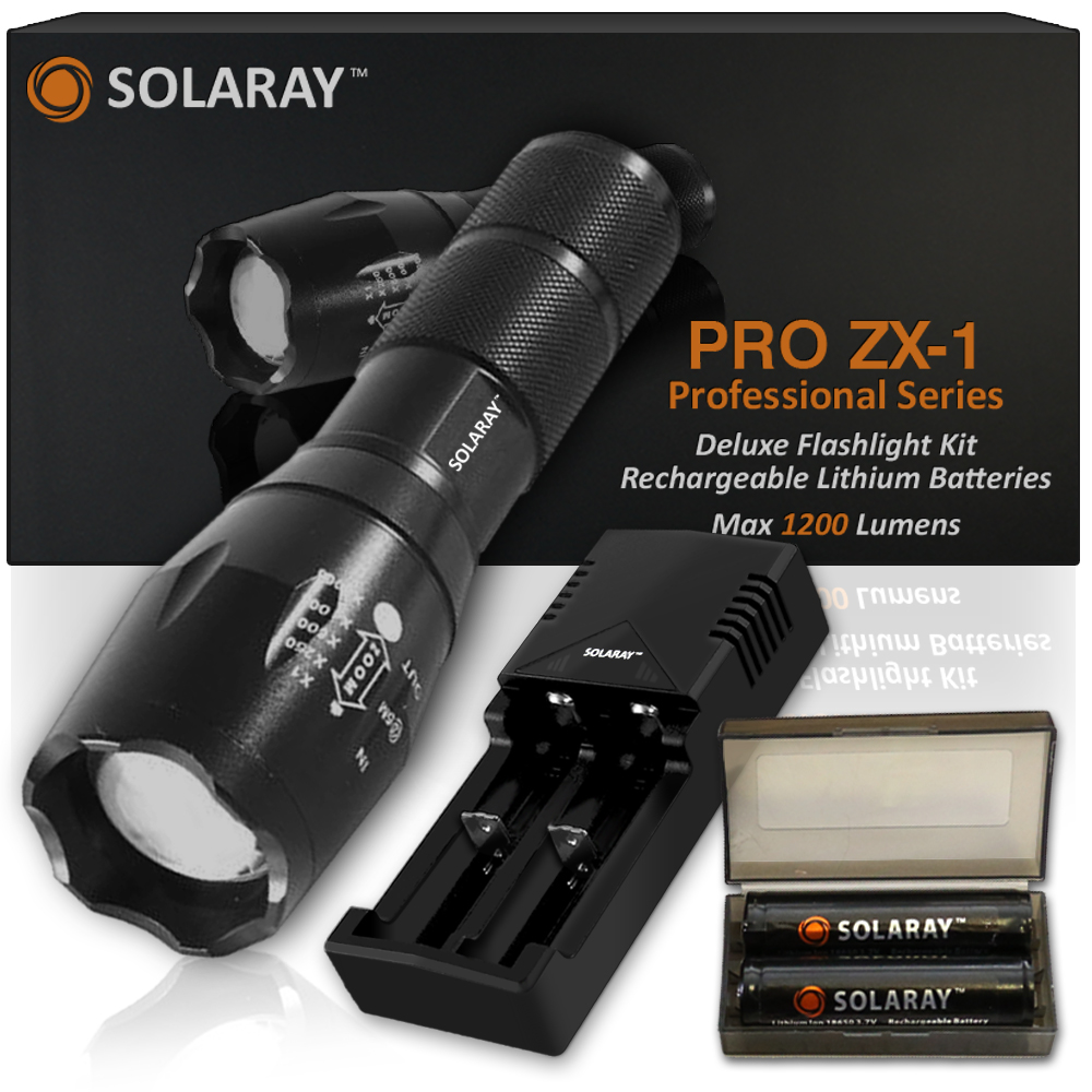 1 x ZX-1 LED Flashlight 1 x Attached Lanyard 1 x Rapid Battery Charger 1 x AAA Battery Holder 2 x Rechargeable Batteries 1 x Storage Case for Batteries 1 x User Manual